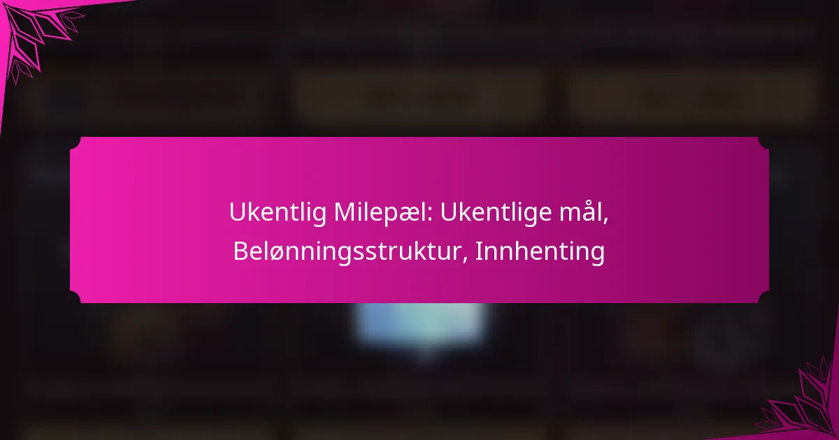 Ukentlige milepæler er strukturerte mål som spillerne kan fullføre i løpet av en uke. De fungerer som en ramme for spillingen, og veileder spillerne mot spesifikke prestasjoner som bidrar til deres totale fremgang i spillet.